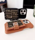 Fendi-Inspired Leather Wallet iPhone Case – Luxury Designer Protective Cover